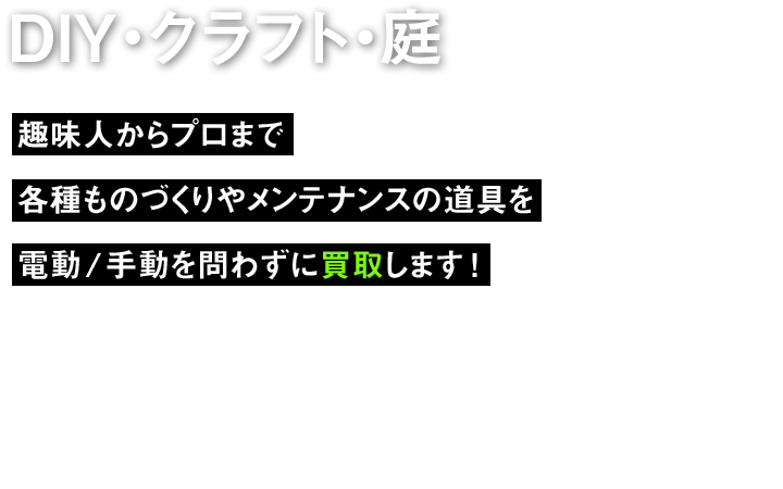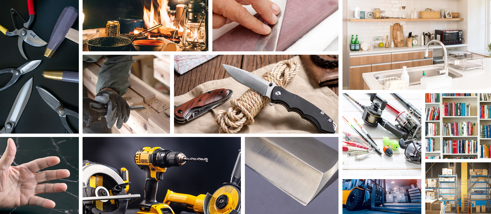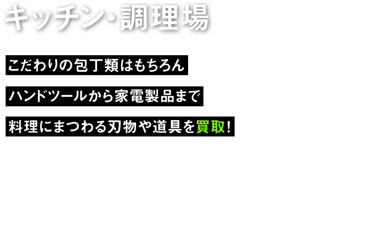 包丁・キッチン道具、ナイフ類、各種電動工具、大工道具、庭師道具、特殊刃物全般、砥石、道具・工具・刃物の専門書、キャンプ・登山道具、釣り道具、業務買取一括、倉庫・納屋・蔵一括
