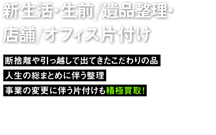 珍しいものや、大量に同じものがある場合、遺品整理や生前整理などの場合は内容により、全国対象で出張買取に伺いますお気軽にお問い合わせください。